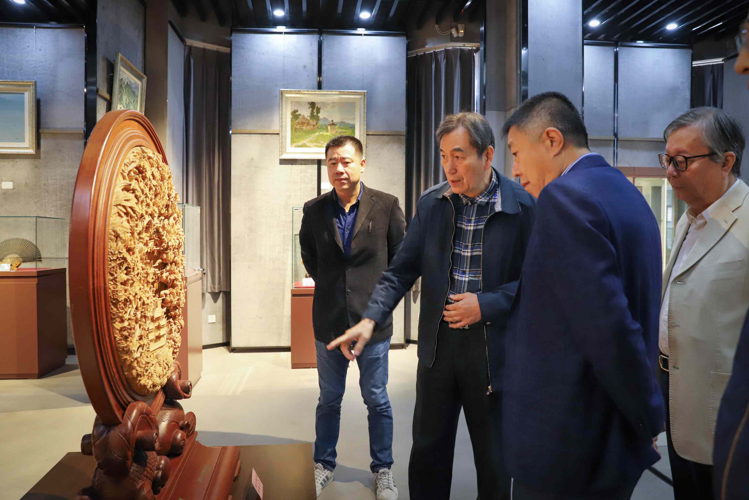 才大穎先后參觀了杭州南佛精舍、王星記扇業(yè)、杭州工美博物館、微拍堂電商平臺(tái)、紹興中國(guó)黃酒博物館、浙江省工美控股公司工藝精品館,走訪了工美大師工作室,實(shí)地考察了余杭藝尚小鎮(zhèn)。才大穎在浙江省二輕集團(tuán)主持召開工美行業(yè)發(fā)展專題座談會(huì),與在杭部分中國(guó)工藝美術(shù)大師、專家、學(xué)者、浙江省二輕集團(tuán)有關(guān)領(lǐng)導(dǎo)和企業(yè),就傳統(tǒng)工美的傳承保護(hù)和工美產(chǎn)業(yè)的創(chuàng)新發(fā)展進(jìn)行深入交流研討。